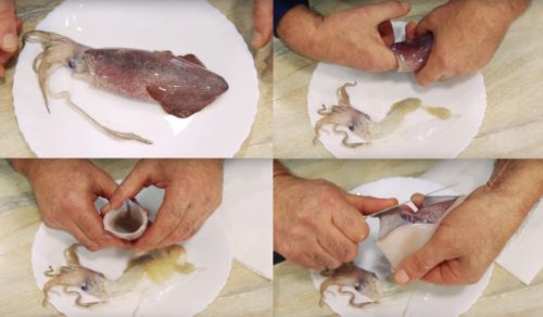 Щоб швидко заморожені кальмари почистити від плівки, використовуйте цей покроковий рецепт: