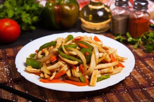 Є безліч відмінних рецептів, в яких використовуються очищені тушки кальмарів. Деякі з них передбачають моментальну термічну обробку на сильному вогні. Інші – повільне ловлення на слабкому. Ці морепродукти можна фарширувати, маринувати, запікати або тушкувати. Дуже приємний і ситний вечеря вийде, якщо кальмари порізати кільцями і підсмажити їх з овочами на сковороді.