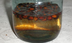 Ще як варіант, можна використовувати звичайне домашнє варення, воно додасть не тільки смак, але і колір. Витрата зовсім невеликий: на 3 л самогону можна додати 4 чайних ложки. Дуже популярна настоянка з горобини, для цього самогон настоюють тиждень на сушений горобиновий ягодах, потім додають цукор, проціджують і отримують відмінний спиртний напій. Будь-які рослинні інгредієнти надають напою особливу м’якість і вишуканість, головне, додати всі в потрібних пропорціях і настоювати протягом необхідного часу.