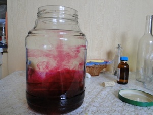 - В 10 літрах алкоголю додають 15 грам марганцю і склянку води.