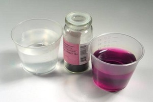 - Готують водний розчин марганцю в пропорції 1,5 грама на 1,5 літра води.