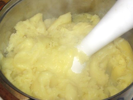 • Картоплю пом’яти до формування пюре з додаванням солі, доведеного до кипіння молока і вбитого в цю суміш одного яйця.