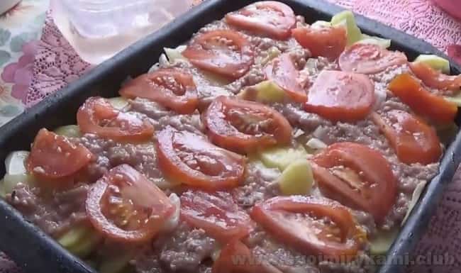 Відеорецепт картоплі з фаршем та сиром у духовці