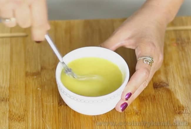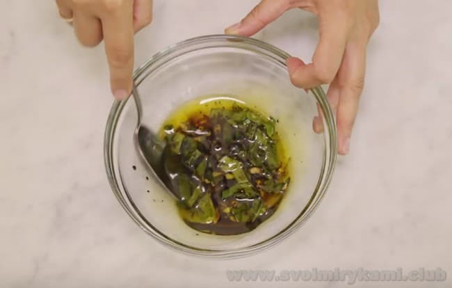 • Для цього змішуємо оливкову олію, винний оцет, замість якого можна взяти сік з лимона.