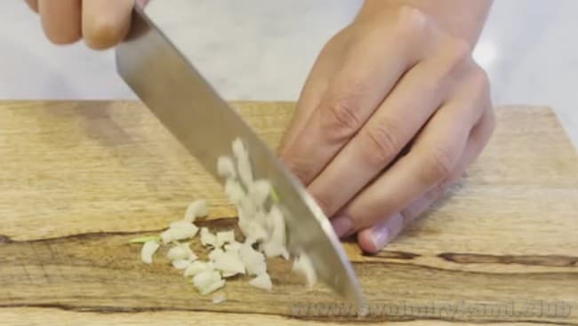 • Додаємо подрібнений часник і перетираємо з сіллю і перцем.
