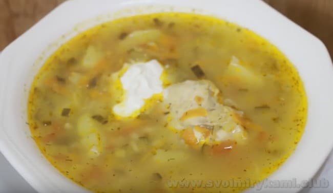 • Перемішуємо лопаткою, накриваємо суп кришкою і варимо близько п’ятнадцяти хвилин.