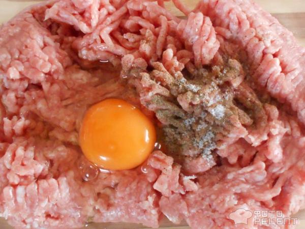 Вбиваємо в свинячий фарш яйце жовток або цілком.