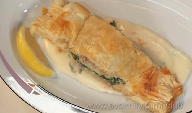 - Кулеб’яка з м’ясом і шпинатом: рецепт з фото