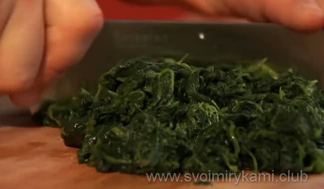 Шпинат повинен важити 500 г у замороженому вигляді. При розморожуванні з нього піде рідина, і він стане легше. Тому зважуйте шпинат заморожений.
