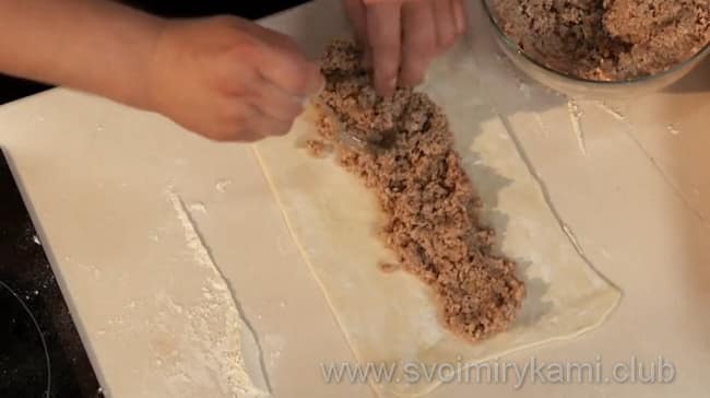 Листкове тісто буває різних розмірів. Якщо це можливо, купіть його із запасом. Тісто можна використовувати для приготування маленьких булочок з різноманітною начинкою.