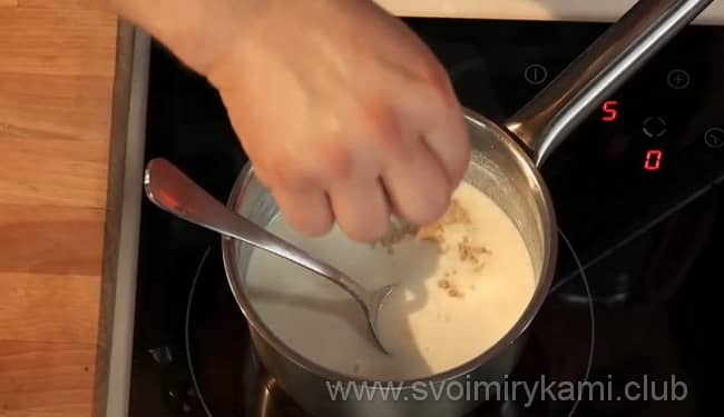У цьому рецепті ми приготуємо соус бешамель. Він додасть страві вершковий смак.