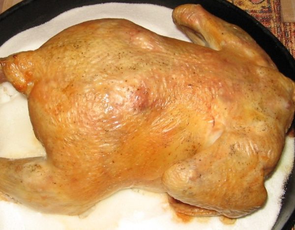 Якщо ви не знаєте, як цілком приготувати курку в духовці, можете зробити це на товстому шарі солі.