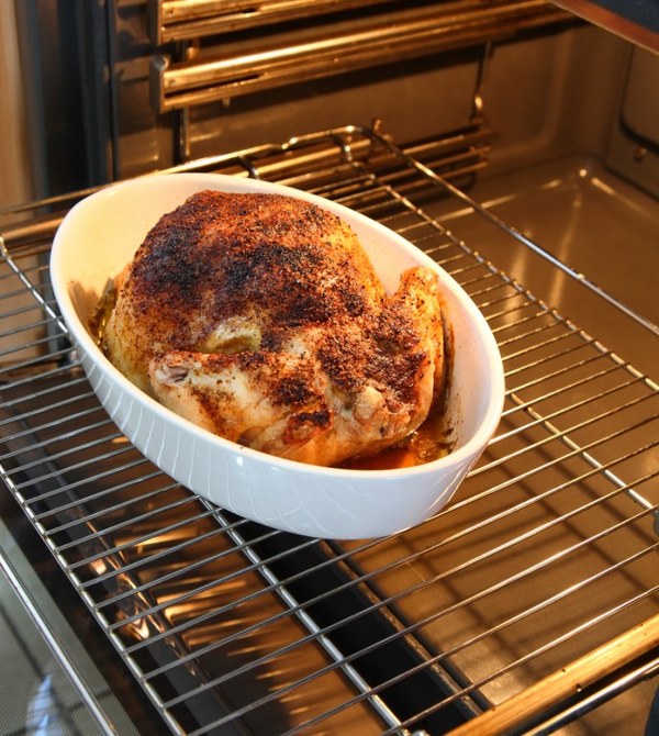 Правда, для цієї мети потрібно спеціальний термометр, який є в наявності далеко не в кожній родині. Якщо ж такого термометра у вас немає, нічого страшного. Тоді потрібно ретельно стежити за часом приготування курочки. Духовку слід розігріти заздалегідь, до того, як у духовці готувати курку, натерту спеціями.