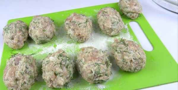 Ложкою або намоченными в прохолодній воді руками з фаршу формуємо котлетки. Котлетки можна обваляти в борошні або сухарях і обсмажити у фритюрі.