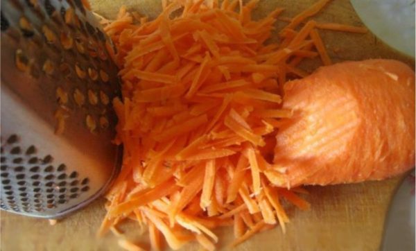 2. Далі натираємо на крупній тертці моркву. Брати її потрібно за смаком, адже хтось любить більше, а хтось менше цього помаранчевого продукту.