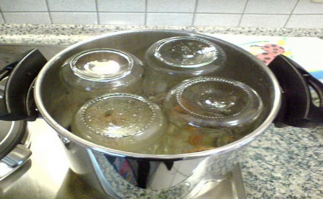Кухонні прилади: каструлі, банки, кришки для закочування, закаточна машинка.На 4 банки по 0,5 літра: