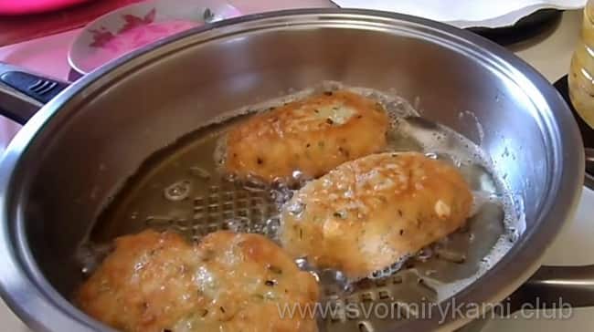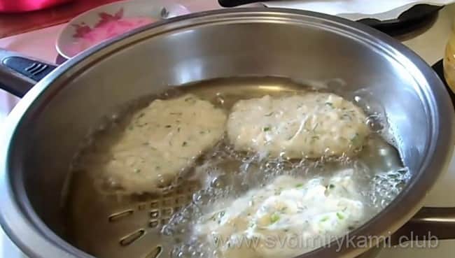 До речі, поки воно буде відпочивати, можна поставити на невеликий вогонь сковороду, щоб вона встигла добре розігрітися. Налити в неї рослинне масло. Я додаю масло без фанатизму, не люблю, коли в жиру плавають пиріжки. Міліметра 3-5, я думаю, буде достатньо.