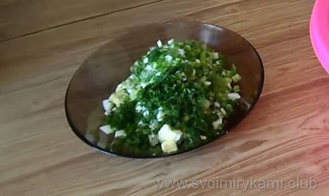 Поки писала заклик до вас вище – придумала: можна розбити яйця для начинки в щільний целофановий пакет, потім його щільно зав’язати і зварити в киплячій воді. Заощадимо: