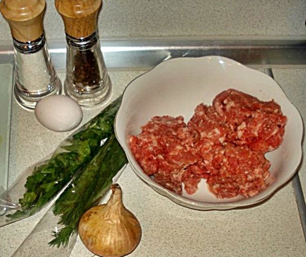 М’ясний фарш перекладаємо в глибоку посуд, додаємо до нього натерту цибулю, часник, приправляємо подрібненою зеленню, перцем і сіллю.