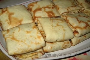 Начиняємо млинці і складаємо на тарілку або блюдо.