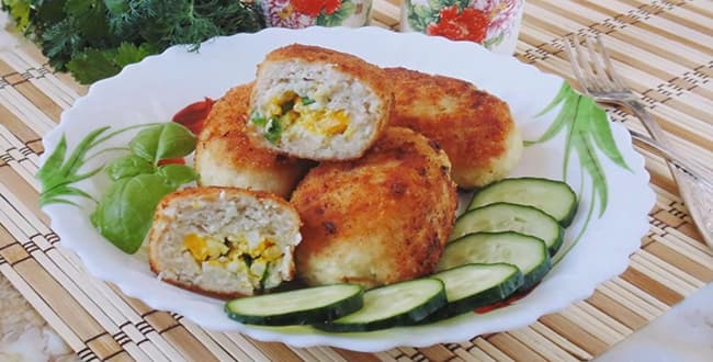 Обов’язково подивіться відео приготування цієї страви. Такі зрази готуються із курячого і свинячого фаршу з яйцем. Зверніть увагу, що їх можна смажити просто на сковороді.