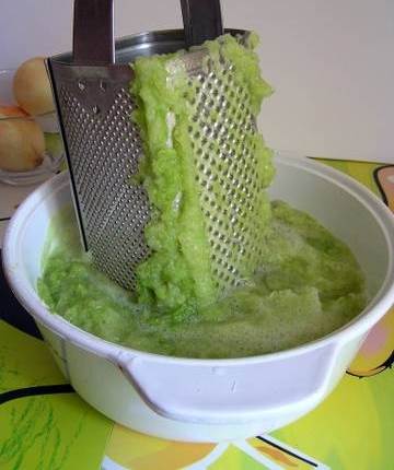 Натріть на тертці кабачок, попередньо очистивши від шкіри і насіння.