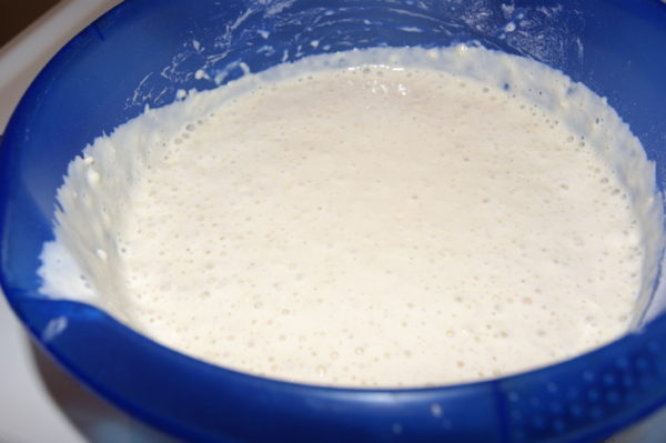 Опару розмішати, не залишаючи грудок, накрити і залишити на півгодини: за цей час вона підніметься і буде в змозі підняти все тісто.