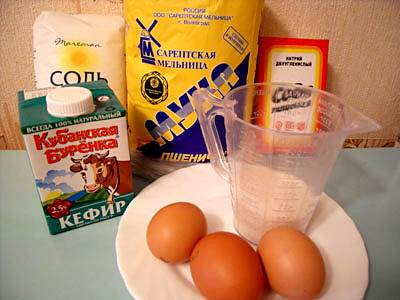 Молоко з яйцями збити блендером, додати погашену оцтом соду. Посолити, додати цукор і соняшникову олію; крупчатку подсеять і поступово додавати в масу, щоб вона була однорідною.