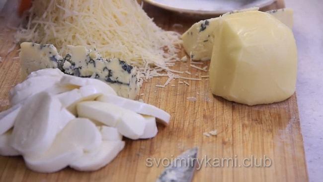 - Горгонзолу замінюють любым блакитним сиром.