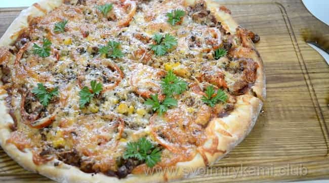Рецепт піци з м’ясним фаршем покроково