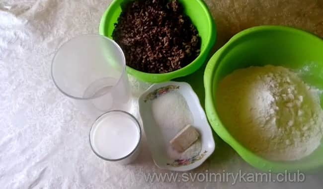 Щоб в процесі приготування пиріжків вам нічого не заважало, відразу підготуйте всі інгредієнти. Також візьміть потрібну посуд або кухонну техніку. Потім звільніть стіл від зайвих предметів і починайте готувати.
