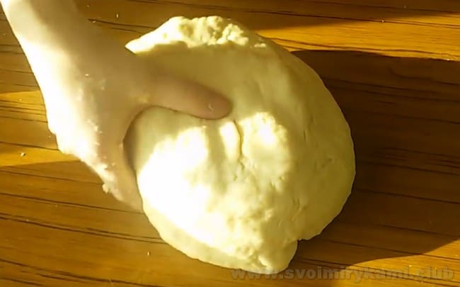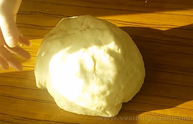 • Формуємо з тіста колобок, поміщаємо його в присипану борошном посуд і залишаємо в спокої на півтори години.
