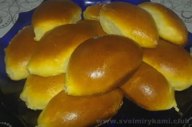 • Тісто добре і швидко пропікається, тому, побачивши підрум’янені пиріжки, можете їх діставати. Верх ще гарячих пиріжків змастіть вершковим маслом, воно швидко вбереться, але додасть приємний вершковий смак.