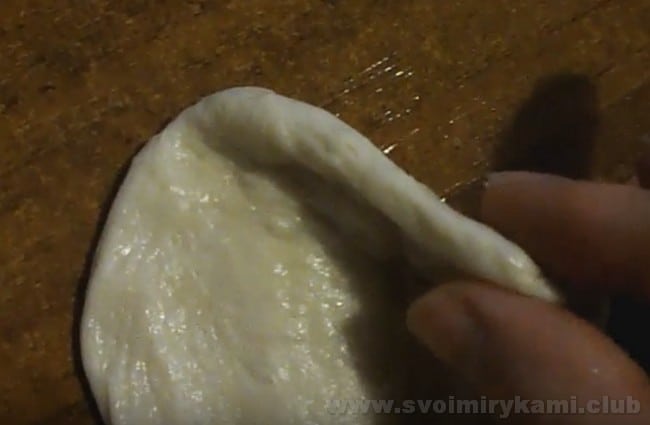 • Після 15 хвилин вимішування готове тісто буде трохи прилипати до долонь. Щоб цього уникнути, трохи змастіть руки рослинним маслом, борошно більше не додавайте.