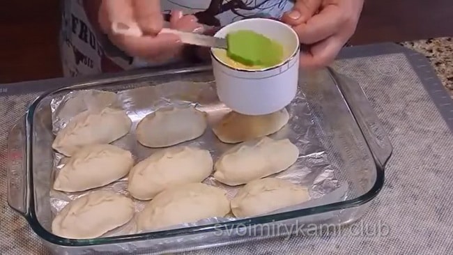 - Викладіть пиріжки «швом» вниз.