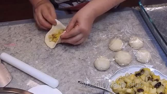 Для їх приготування потрібно проробити ті ж самі маніпуляції з тестом і начинкою, що описано в рецепті для дріжджових пиріжків в духовці. Після того як є готове тісто, можна приступати до роботи: