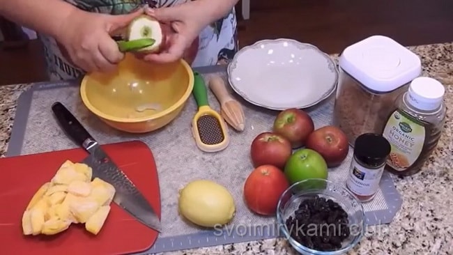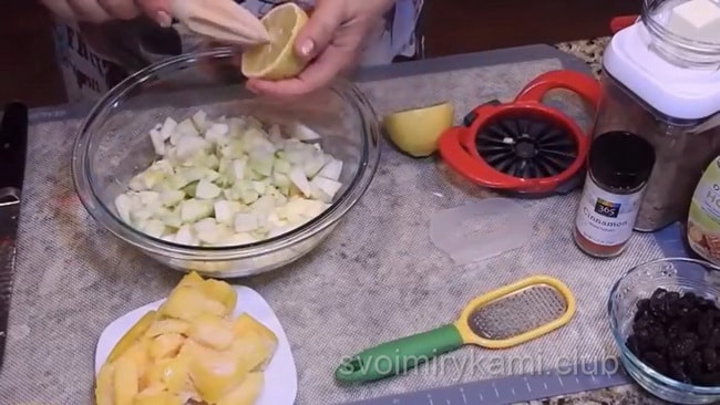 Чи знаєте ви? Сік лимона не дасть яблук можливості потемніти.Тепер починаємо сам процес готування начинки.