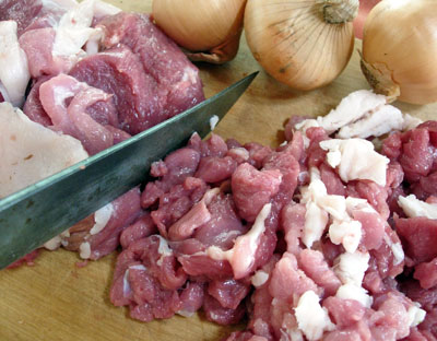 Насамперед, слід замочити рис, приблизно на півгодини, а в цей час зайнятися м’ясом. Яловичину потрібно обробити до повного видалення плівочок, нарізати шматочками.