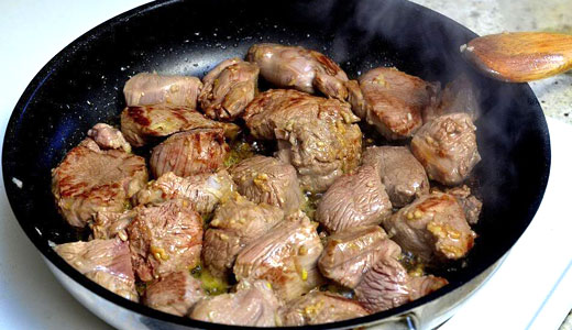 М’ясо треба обсмажити на сковороді, перекласти в чавунець, протушкувати півгодини.