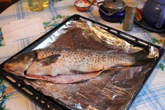 Природно, попередньо слід очистити від нутрощів, луски, зябер і іншого зайвого, промити чистою проточною водою як зовні, так і всередині, натерти перцем, сіллю, спеціями.