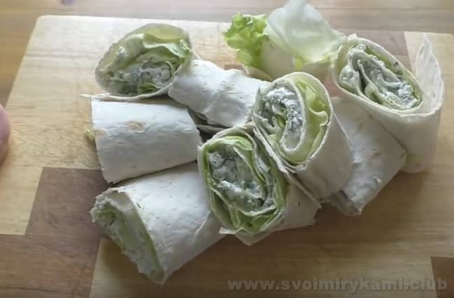 Якщо ви завзятий любитель суші, спробуйте приготувати лаваш з сьомгою і сирним сиром – такий собі «русифікований» варіант ролів. До речі, з інгредієнтами таких закусок можна досить вільно експериментувати. Наприклад, лаваш з червоною рибою і огірком порадує вас своєю соковитістю.