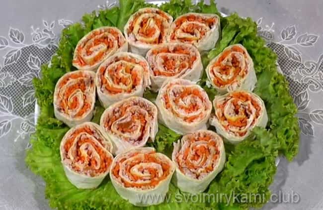 Рулет з лаваша з корейською морквою відеорецепт