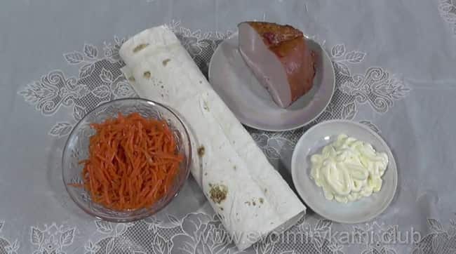 - Рулет з лаваша з корейською морквою відеорецепт
