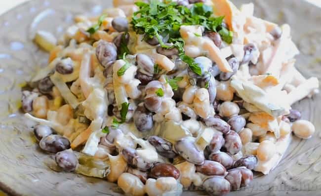 - Салат «Обжорка»: рецепт з квасолею, куркою і грибами по кроках