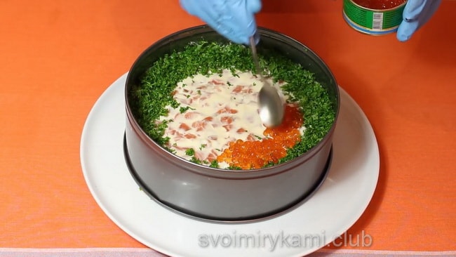 - Відеорецепт приготування салату з червоною рибою та ікрою