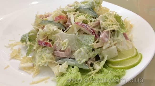 - Салат з шинкою, сиром і свіжими огірками відеорецепт