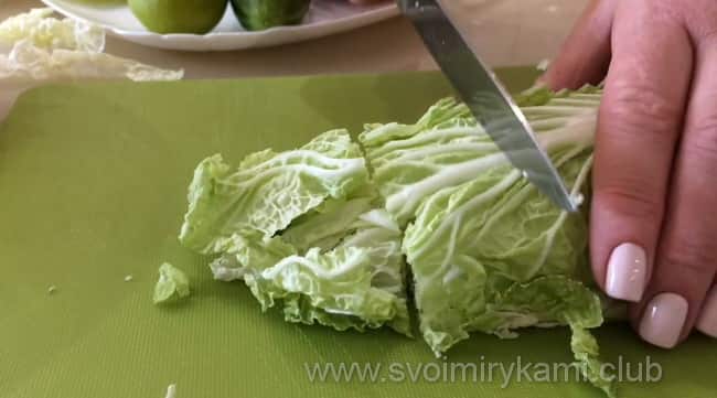 Пекінську капусту нашинковываем смужками середнього розміру.