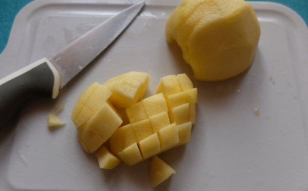 Тепер в збиту суміш слід додати борошно, але перш слід просіяти через сито. Деякі господині перед додаванням борошна змішують її з невеликою кількістю кукурудзяного крохмалю. Це робиться для того, що б шарлотка була пишніше і легшим. Вводити борошно слід поступово. Разом з борошном у тісто додаємо ванілін. Коли тісто готове, починаємо займатися яблуками. Їх треба помити, звільнити від внутрішньої частини і порізати часточками.