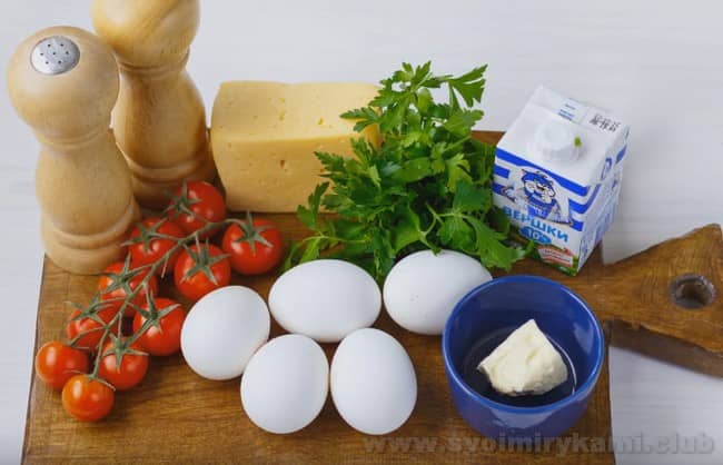 Чим гарний омлет з помідорами, так це тим, що помідори надають яйцям соковитості, і навіть якщо у вас немає молока, все одно вийде смачний і ситний сніданок. А тепер подивимося, з чого і як нам готувати.