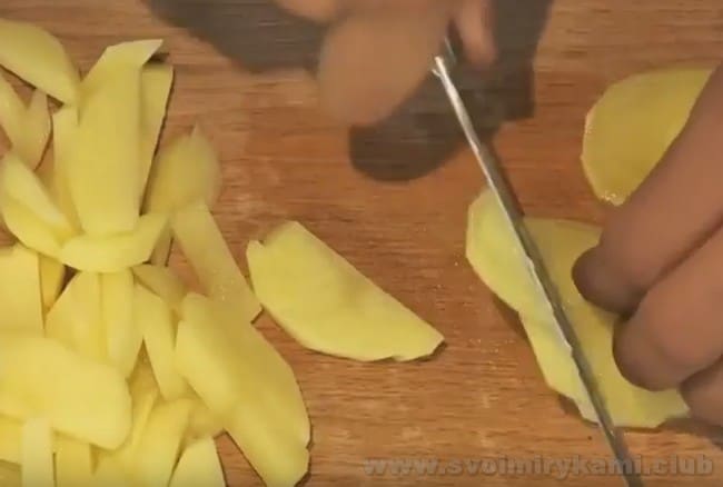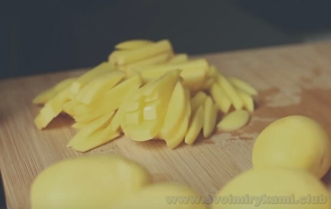 - Не потрібно відразу ж заважати картоплю, нехай вона спочатку схопиться рум’яною скоринкою. Всього за весь час заважати потрібно 3-4 рази.